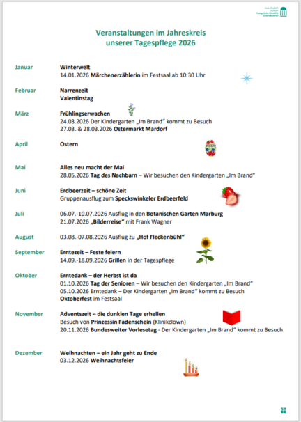 Geplant sind Feiern, Ausflüge und Besuche vom Kindergarten.